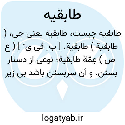 ( طابقیة ) طابقیة. [ ب ِ قی ی َ ] ( ع ص ) عِمّة طابقیة؛ نوعی از دستار بستن. و آن سربستن باشد بی زیر حَنک. ( منتهی الارب ) ( آنندراج ).