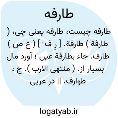 ( طارفة ) طارفة. [ رِ ف َ ] ( ع ص ) طارف. جاء بطارفة عین؛ آورد مال بسیار از. ( منتهی الارب ). ج، طوارف. || در عربی بکسر ثالث، شخصی را گویند که میان او و جدّ اکبر او آباء بسیار باشند یعنی از جد اکبر خود بسیار دور باشد. ( برهان ). || میوه و جز آن که غریب و نادر بود.