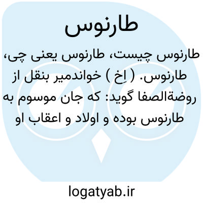 طارنوس. ( اِخ ) خواندمیر بنقل از روضةالصفا گوید: که جان موسوم به طارنوس بوده و اولاد و اعقاب او مادام که اوامر و نواهی الهی را مطیع و منقاد بودند در غایت رفاهیت روزگار میگذرانیدند و چون یک دور ثوابت نزدیک به انتها رسید، و مدّت یک دور ثوابت نزد حکماء اوایل، سی و ششهزار سال است و ابن الاعلم مدت آن را بیست وپنجهزارودویست سال یافته و محی الدین مغربی که قول او نزد علمای متأخرین حجت است بیست وچهارهزار سال گفته، آن جماعت تقریباً آغازعصیان و طغیان کرده منتقم جبار بعد از الزام حجت اکثر ارباب معصیت را به دارالبوار فرستاد، و بقیه ایشان را که ربقه اطاعت در رقبه داشتند بتجدید شریعتی عطا فرمود. ( حبیب السیر چ 1 تهران ج 1 جزو 1 ص 7 ).