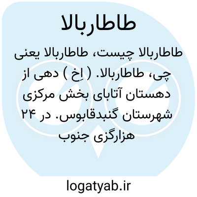 طاطاربالا. ( اِخ ) دهی از دهستان آتابای بخش مرکزی شهرستان گنبدقابوس. در 24 هزارگزی جنوب باختری گنبد و 6 هزارگزی شمال شوسه گنبد به گرگان. دشت معتدل مالاریائی، با260 تن سکنه. آب آن از چاه. محصول آنجا غلات دیمی و حبوبات و صیفی و لبنیات. شغل اهالی زراعت و گله داری. صنایع دستی زنان قالیچه بافی و راه آن مالرو است. چادرنشین هستند و تغییر مکان میدهند. ( از فرهنگ جغرافیائی ایران ج 3 ).