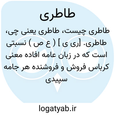 طاطری. [ری ی ] ( ع ص ) نسبتی است که در زبان عامه افاده معنی کرباس فروش و فروشنده هر جامه سپیدی میکند. ( سمعانی ). یاقوت گوید: لا ادری این هی. و فی کتاب الشام؛ انبأنا ابوعلی الحداد، انبأنا ابوبکربن زیدة، انبأنا سلیمان بن احمد؛ کُل ُ من یبیع الکرابیس بدمشق، یسمی الطاطری. ( معجم البلدان ج 6 ). رجوع به طاطریة شود. طاطری. [ طَ ] ( اِخ ) از متکلمین شیعه است و کتاب الامامة از اوست. ( ابن الندیم ). ابوسهل اسماعیل بن علی بن النوبخت النوبختی را کتابی است بنام کتاب الرد علی الطاطری فی الامامة. ( ابن الندیم ).