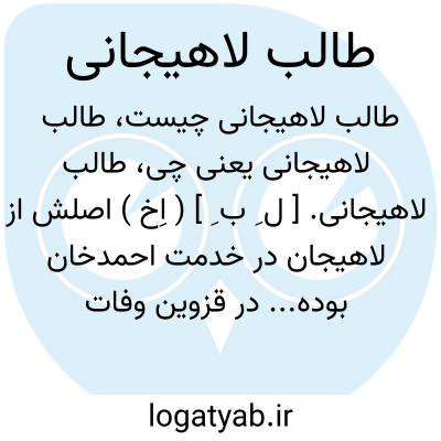 طالب لاهیجانی. [ ل ِ ب ِ ] ( اِخ ) اصلش از لاهیجان در خدمت احمدخان بوده... در قزوین وفات یافته، از او است: بعد عمری گر نگاهی جانب من میکند صد نگه بهر تسلی سوی دشمن میکند.( آتشکده آذر ص 163 ).
