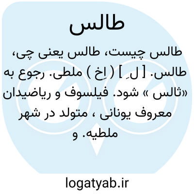 (مشهور به: طالس مَلَطی) فیلسوف و دانشمند یونانی. موجب پیشرفت هایی در هندسه شد، خورشیدگرفتگی سال ۵۸۵پ م را پیش بینی کرد و در مقام یکی از مادّه گرایان فلسفی، این نظریه را پرداخت که آب اصل آغازینِ همۀ چیزهاست. حدس می زد که زمین در آب شناور بوده است و به این ترتیب توضیحی برای زمین لرزه پیش نهاد. در میلتوس واقع در آسیای صغیر می زیست. طالس رویدادهایی چون زمین لرزه را برطبق قانون های حاکم بر پدیده های طبیعی تبیین می کرد و نه به شیوۀ معمول برحسب فعالیت خدایان. بنابر گزارش ارسطو، بر طالس خرده می گرفتند که به واقعیت های عملی آگاهی و توجهی ندارد و او، که پیش بینی کرده بود وضع هوا در سال بعد موجب خواهد شد که محصول زیتون فراوانی به بار آید، همۀ دستگاه های روغن کشی زیتون در میلتوس را خرید و با اقدام به این انحصارگری سود سرشاری برد. طالس، در پنج گزارۀ بنیادین، اصولی را پی نهاد که هندسۀ کلاسیک بر آن ها استوار شد: ۱. دایره را قطرش به دو نیم تقسیم می کند؛ ۲. در هر مثلث متساوی الساقین، دو زاویۀ متقابل با ضلع های متساوی، خود با یکدیگر برابرند؛ ۳. هرگاه دو خط راست یکدیگر را قطع کنند، چهار زاویه ایجاد می شود که زاویه های متقابل با یکدیگر برابرند؛ ۴. زاویۀ محاط در یک نیم دایره زاویه ای قائمه است؛ ۵. دو مثلث در صورتی هم ارزند که دو زاویه و یک ضلعشان به ترتیب با یکدیگر مساوی باشند. ابداع مفهوم برهان به روش قیاسی را به طالس نسبت داده اند.