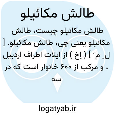 طالش مکائیلو. [ ل ِ م َ ] ( اِخ ) از ایلات اطراف اردبیل، و مرکب از 600 خانوار است که در سه فرسخی اردبیل در قریه الچه مسکن دارند، ییلاق و قشلاق ندارند.