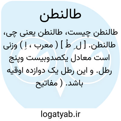 طالنطن. [ ل ِ طُ ] ( معرب، اِ ) وزنی است معادل یکصدوبیست وپنج رطل. و این رطل یک دوازده اوقیه باشد. ( مفاتیح خوارزمی ) ( ابن الندیم ). || پول یونانی. ( قفطی ). رجوع به تالان شود.