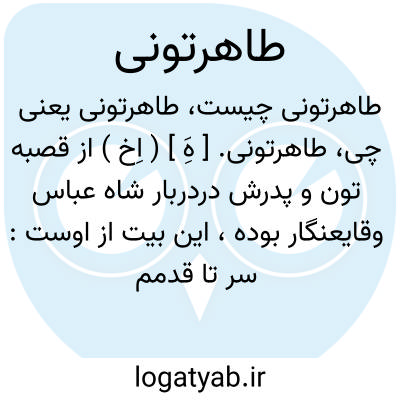 طاهرتونی. [ هَِ ] ( اِخ ) از قصبه تون و پدرش دردربار شاه عباس وقایعنگار بوده، این بیت از اوست: