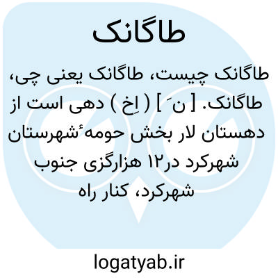 طاگانک. [ ن َ ] ( اِخ ) دهی است از دهستان لار بخش حومه ٔشهرستان شهرکرد در12 هزارگزی جنوب شهرکرد، کنار راه طاگانک به شهرکرد. جلگه. معتدل. با 2138 سکنه. آب آن از قنات و رودخانه محصول آنجا غلات. شغل اهالی زراعت گله داری. صنایع دستی قالی بافی. راه آن ماشین رو است. دبستانی دارد. ( از فرهنگ جغرافیائی ایران ج 10 ).