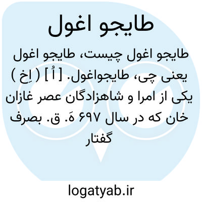 طایجواغول. [ اُ ] ( اِخ ) یکی از امرا و شاهزادگان عصر غازان خان که در سال 697 هَ. ق. بصرف گفتار شخصی که به او پیش گوئی کرده بود که پس از چهل روز سریر پادشاهی بوجود تو مزین خواهد شد. دود پندار بکاخ دماغ او تصاعد کرد هم در آن ایام خبر بگوش غازانخان رسید و طایجو را با مقربان و امرا و کرامات گوی نادان بیاسا رسانید. ( از حبیب السیر چ خیام ج 3 ص 151 ). رجوع به همان جلد ص 140 و ج 1 ص 137 و تاریخ غازان ص 97، 118، 119 و تاریخ مغول تألیف اقبال ص 265 ذیل «تایجور» شود.