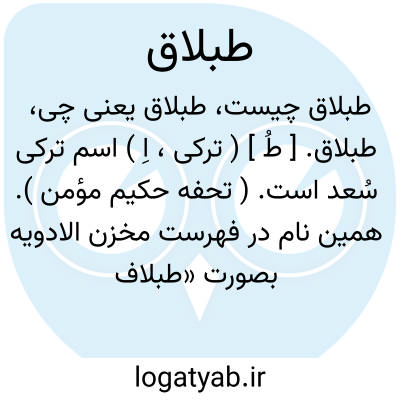 طبلاق. [ طُ ] ( ترکی، اِ ) اسم ترکی سُعد است. ( تحفه حکیم مؤمن ). همین نام در فهرست مخزن الادویه بصورت «طبلاف » آمده است.