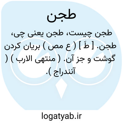 طجن. [ طَ ] ( ع مص ) بریان کردن گوشت و جز آن. ( منتهی الارب ) ( آنندراج ).