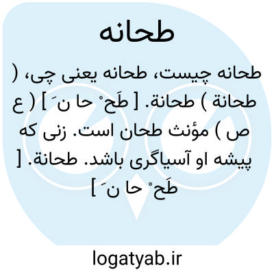 طحانة. [ طَح ْ حا ن َ ] ( ع اِ ) شتر بسیار.( منتهی الارب ) ( مهذب الاسماء ). || آس اشتر.( مهذب الاسماء ). آسیا که با شتر گردد. ستور آس. آسیاکه به ستور گردد. || آس که به آب گردد.