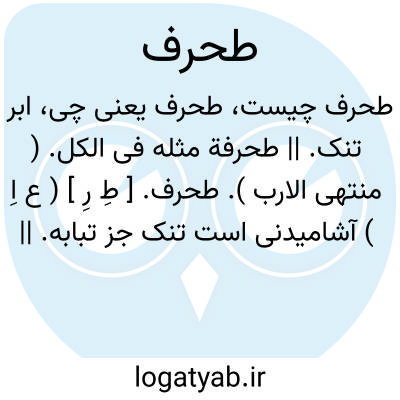 طحرف. [ طِ رِ ] ( ع اِ ) آشامیدنی است تنک جز تبابه. || شوربای تنک. || مسکه تنک.