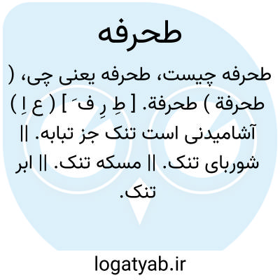 ( طحرفة ) طحرفة. [ طِ رِ ف َ ] ( ع اِ ) آشامیدنی است تنک جز تبابه. || شوربای تنک. || مسکه تنک. || ابر تنک. ( منتهی الارب ).