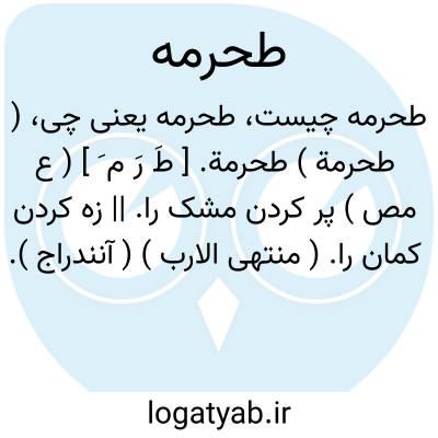 ( طحرمة ) طحرمة. [ طَ رَ م َ ] ( ع مص ) پر کردن مشک را. || زه کردن کمان را. ( منتهی الارب ) ( آنندراج ).