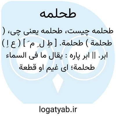( طحلمة ) طحلمة. [ طِ ل ِ م َ ] ( ع اِ ) ابر. || ابر پاره: یقال ما فی السماء طحلمة؛ ای غیم او قطعة منه. ( منتهی الارب ) ( آنندراج ).