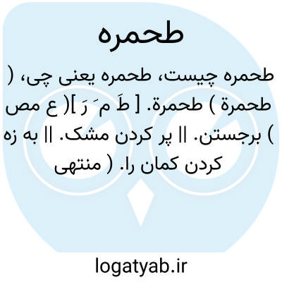 ( طحمرة ) طحمرة. [ طَ م َ رَ ]( ع مص ) برجستن. || پر کردن مشک. || به زه کردن کمان را. ( منتهی الارب ) ( آنندراج ).