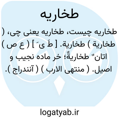 لغت نامه دهخدا ( طخاریة ) طخاریة. [ طَ ی َ ] ( ع ص ) اتان ٌ طخاریةٌ؛ خر ماده نجیب و اصیل. ( منتهی الارب ) ( آنندراج ).