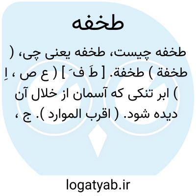 ( طخفة ) طخفة. [ طَ ف َ ] ( ع ص، اِ ) ابر تنکی که آسمان از خلال آن دیده شود. ( اقرب الموارد ). ج، طخاف.