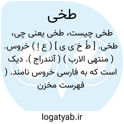 طخی. [ طُ خ َی ی ] ( ع اِ ) خروس. ( منتهی الارب ) ( آنندراج ). دیک است که به فارسی خروس نامند. ( فهرست مخزن الادویه ).