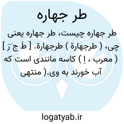 ( طرجهارة ) طرجهارة. [ طَ ج َرَ ] ( معرب، اِ ) کاسه مانندی است که آب خورند به وی.( منتهی الارب ) ( آنندراج ) آوند می. ج، طرجهارات. ( مهذب الاسماء ). قمع. || پنگانچه. ( منتهی الارب )( آنندراج ). سومله. بوقاله. قیف. فنجانه. طرجهالة. || نام آلتی از آلات ساعت. ( مفاتیح خوارزمی ). رجوع به طرجهالة شود.