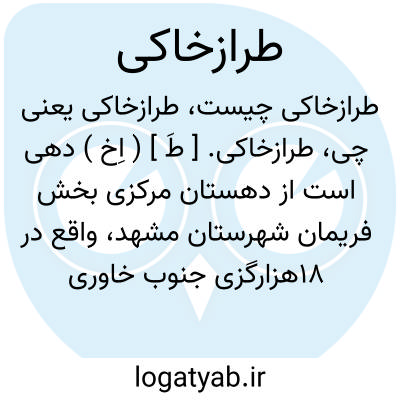 طرازخاکی. [ طَ ] ( اِخ ) دهی است از دهستان مرکزی بخش فریمان شهرستان مشهد، واقع در 18هزارگزی جنوب خاوری فریمان و 6هزارگزی جنوب باختری شوسه ٔعمومی فریمان به تربت جام. جلگه، معتدل با 159 تن سکنه. آب آن از قنات. محصول آنجا غلات، بنشن و چغندر. شغل اهالی زراعت. راه آن مالرو است و در تابستان اتومبیل از آن میرود. ( از فرهنگ جغرافیائی ایران ج 9 ).