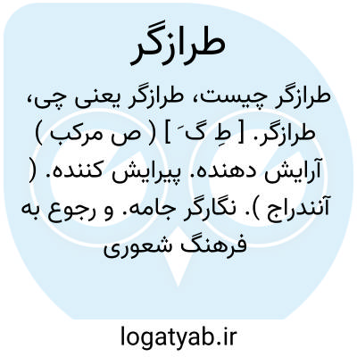 طرازگر. [ طِ گ َ ] ( ص مرکب ) آرایش دهنده. پیرایش کننده. ( آنندراج ). نگارگر جامه. و رجوع به فرهنگ شعوری ص 167 شود.