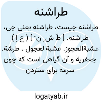 طراشنه. [ طَ ش ِ ن َ ] ( ع اِ ) عشبةالعجوز. عشبةالعجول. طرشة. جعفریة و آن گیاهی است که چون سرمه برای ستردن سفیدی ( بیاض العین ) بکار است.این نام در اصل «طرسنة» بوده است. ( لکلرک ص 407 ).