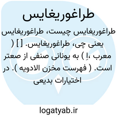 طراغوریغایس. [ ] ( معرب،اِ ) به یونانی صنفی از صعتر است. ( فهرست مخزن الادویه ). در اختیارات بدیعی ( در نسخه خطی ) طراغوریغایش ضبط شده و گوید: فودنج جبلی است. ( اختیارات بدیعی ).