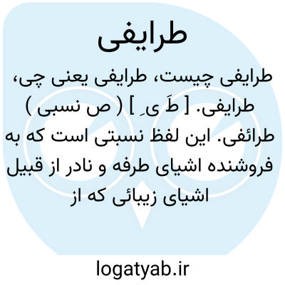 طرایفی. [ طَ ی ِ ] ( ص نسبی ) طرائفی. این لفظ نسبتی است که به فروشنده اشیای طرفه و نادر از قبیل اشیای زیبائی که از چوب و تخته و مانند آن بدقت میسازند داده شده، همچنین فروشنده شراب طرفه و نادر را نیز طرائفی گویند. عین متن عبارت سمعانی برای مزید استبصار نقل میگردد: هذه النسبة الی بیعالطرائف و شرابها و هی الاشیاء الملیحة من الخشب. ( سمعانی ص 369 ). طرفه فروش.