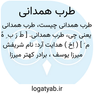 طرب همدانی. [ طَ رَ ب ِ هََ م َ ] ( اِخ ) هدایت آرد: نام شریفش میرزا یوسف، برادر کهتر میرزا ابوالقاسم همدانی و شیخ الاسلام آن شهر بوده، شاهزاده مغفور معظم دولتشاه طاب ثراه به وی مرحمتها میفرمود، و فاضلی دانشمند و دبیری بیمانند، در جودت طبع و حدت ذهن و استقامت سلیقه و بذله های دلکش و سخنان خوش مشهور، و در عهد دولت قطب السلاطین محمدشاه ثانی قاجار طاب ثراه رحلت نموده. از اشعار آن جناب است: