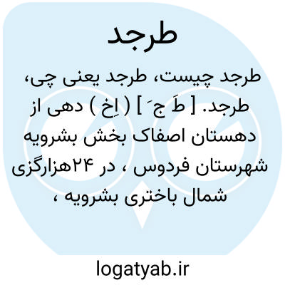 طرجد. [ طَ ج َ ] ( اِخ ) دهی از دهستان اصفاک بخش بشرویه شهرستان فردوس، در 24هزارگزی شمال باختری بشرویه، سر راه مالرو عمومی بشرویه به زین آباد. دامنه و گرم، 66 تن سکنه، آب آن از قنات و محصول آنجا غلات و پنبه و ارزن و میوه جات و پیله و تریاک. شغل اهالی زراعت و کرباس بافی و راه آن مالرو است. ( از فرهنگ جغرافیایی ایران ج 9 ).