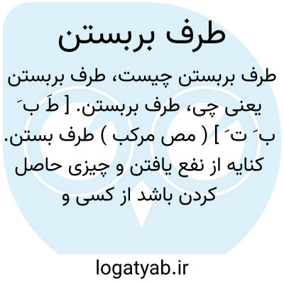 طرف بربستن. [ طَ ب َ ب َ ت َ ] ( مص مرکب ) طرف بستن. کنایه از نفع یافتن و چیزی حاصل کردن باشد از کسی و جائی. ( برهان ) ( آنندراج ):