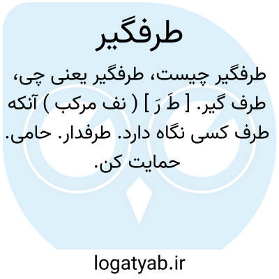 طرف گیر. [ طَ رَ ] ( نف مرکب ) آنکه طرف کسی نگاه دارد. طرفدار. حامی. حمایت کن.