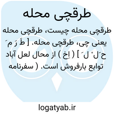 لغت نامه دهخدا طرقچی محله. [ طَ رَ م َ ح َل ْ ل َ ] ( اِخ ) از محال لعل آباد توابع بارفروش است. ( سفرنامه مازندران رابینو ص 118 بخش انگلیسی ).