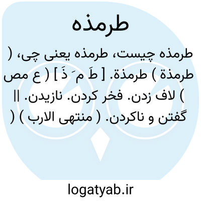 لغت نامه دهخدا ( طرمذة ) طرمذة. [ طَ م َ ذَ ] ( ع مص ) لاف زدن. فخر کردن. نازیدن. || گفتن و ناکردن. ( منتهی الارب ) ( آنندراج ). و لیس هذا من کلام اهل البادیة. ( منتهی الارب ).طرمذة. [ طِ م ِ ذَ] ( ع ص ) آنکه کردار او موافق گفتارش نباشد. || آنکه کار را درست نتواند کرد. ( منتهی الارب ).