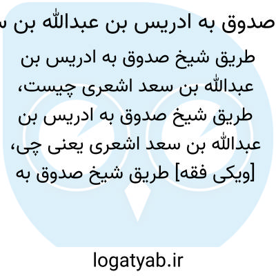 [ویکی فقه] طریق شیخ صدوق به ادریس بن عبدالله بن سعد اشعری، از اصطلاحات بکار رفته در علم حدیث بوده و به طریقی گفته می شود که شیخ صدوق روایات ادریس بن عبدالله بن سعد اشعری را از آن طریق نقل کرده است.