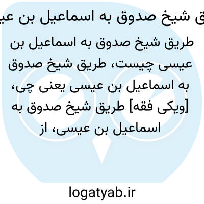 [ویکی فقه] طریق شیخ صدوق به اسماعیل بن عیسی، از اصطلاحات بکار رفته در علم حدیث بوده و به طریقی گفته می شود که شیخ صدوق روایات اسماعیل بن عیسی را از آن طریق نقل کرده است.