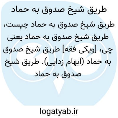 [ویکی فقه] طریق شیخ صدوق به حماد (ابهام زدایی). طریق شیخ صدوق به حماد ممکن است اشاره به اشخاص و شخصیت های ذیل باشد: • طریق شیخ صدوق به حماد نوا، از اصطلاحات بکار رفته در علم حدیث• طریق شیخ صدوق به حماد بن عمرو، از اصطلاحات بکار رفته در علم حدیث• طریق شیخ صدوق به حماد بن عثمان، از اصطلاحات بکار رفته در علم حدیث
