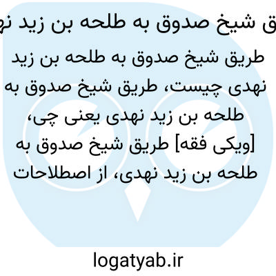 [ویکی فقه] طریق شیخ صدوق به طلحه بن زید نهدی، از اصطلاحات بکار رفته در علم حدیث بوده و به طریقی گفته می شود که شیخ صدوق روایات طلحه بن زید نهدی را از آن طریق نقل کرده است.