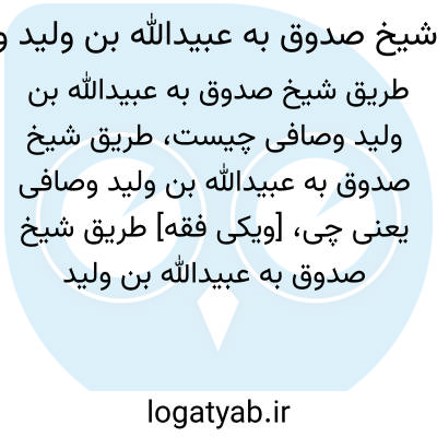 [ویکی فقه] طریق شیخ صدوق به عبیدالله بن ولید وصافی، از اصطلاحات بکار رفته در علم حدیث بوده و به طریقی گفته می شود که شیخ صدوق روایات عبیدالله بن ولید وصافی را از آن طریق نقل کرده است.