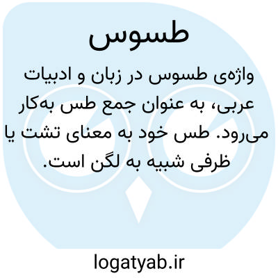 واژه‌ی طُسُوس در زبان و ادبیات عربی، به عنوان جمعِ طَس به‌کار می‌رود. طَس خود به معنای تَشت یا ظرفی شبیه به لگن است که معمولاً از جنس مس یا فلز ساخته می‌شده و برای شست‌وشو یا مصارف مشابه مورد استفاده قرار می‌گرفته است. بنابراین، طُسُوس در کاربرد اصلی خود به چندین تَشت یا ظروف از این دست اشاره دارد. در متون کهن و فرهنگ‌نامه‌های عربی، این واژه اغلب در توصیف لوازم خانگی یا ظروف مربوط به حمام و شست‌وشو دیده می‌شود. این اصطلاح، نمونه‌ای از قواعد جمع‌سازی در زبان عربی است که در آن، واژه‌های مفرد در قالب‌های گوناگونی جمع بسته می‌شوند و طُسُوس نیز یکی از این اشکال به‌شمار می‌رود. با توجه به ریشه‌ی تاریخی این واژه، می‌توان آن را در زمره‌ی واژگان تخصصی مربوط به زندگی روزمره در تمدن اسلامی و عربی قرار داد. امروزه اگرچه کاربرد عملی این کلمه در گفتار روزمره کمتر شده، اما در متون ادبی، تاریخی و فرهنگ‌نویسی، جایگاه خود را به عنوان یک واژه‌ی معتبر و کهن حفظ کرده است.