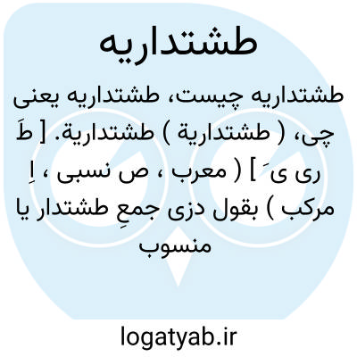 ( طشتداریة ) طشتداریة. [ طَ ری ی َ ] ( معرب، ص نسبی، اِ مرکب ) بقول دزی جمعِ طشتدار یا منسوب به طشتدار است. رجوع به طشتدار شود.