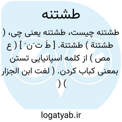 ( طشتنة ) طشتنة. [ طَ ت َن َ ] ( ع مص ) از کلمه اسپانیایی تستن بمعنی کباب کردن. ( لغت ابن الجزار ) ( زادالمسافر ): کامون مقلی یعنی مطشطن. ( دزی ج 2 ص 44 ).