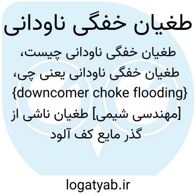 {downcomer choke flooding} [مهندسی شیمی] طغیان ناشی از گذر مایع کف آلود با اُفت فشار اصطکاکی بیشتر در ناودانی در نتیجۀ افزایش عبوردهی مایع که به دلیل خفگی موجب انباشت مایع در سینی بالایی می شود