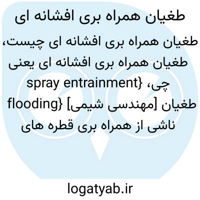 {spray entrainment flooding} [مهندسی شیمی] طغیان ناشی از همراه بری قطره های مایع به حدی که مایع به جای جاری شدن به سمت سینی پایینی به صورت افشانه ای به سینی بالایی راه یابد