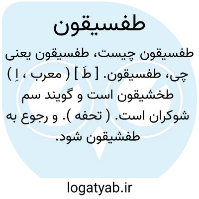 لغت نامه دهخدا طفسیقون. [ طَ ] ( معرب، اِ ) طخشیقون است و گویند سم شوکران است. ( تحفه ). و رجوع به طفشیقون شود.
