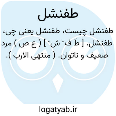 طفنشل. [ طَ ف َ ش َ ] ( ع ص ) مرد ضعیف و ناتوان. ( منتهی الارب ).