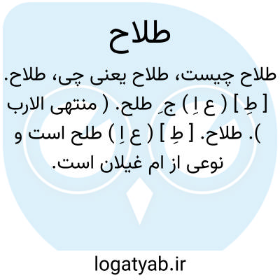 طلاح. [ طِ ] ( ع اِ ) طلح است و نوعی از ام غیلان است. ( فهرست مخزن الادویه ).
