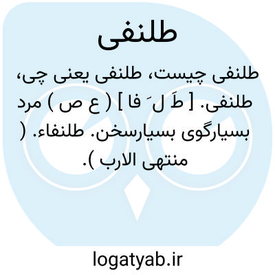 طلنفی. [ طَ ل َ فا ] ( ع ص ) مرد بسیارگوی بسیارسخن. طلنفاء. ( منتهی الارب ).