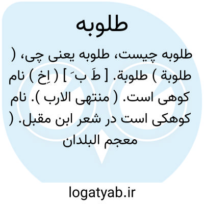 ( طلوبة ) طلوبة. [ طَ ب َ ] ( اِخ ) نام کوهی است. ( منتهی الارب ). نام کوهکی است در شعر ابن مقبل. ( معجم البلدان ).